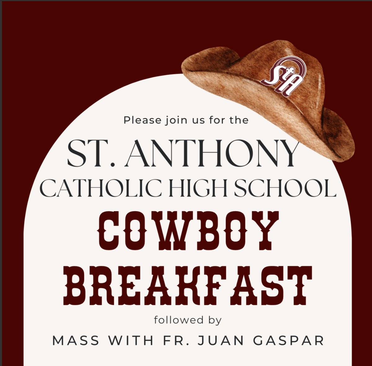 Join us for Cowboy Breakfast! We are wrapping up Catholic Schools Week with a free Cowboy Breakfast sponsored by PTC! Students and staff are encouraged to come in their best western duds. The breakfast will be followed by a community Mass. All families are invited to join! Published January 23, 2026 Print