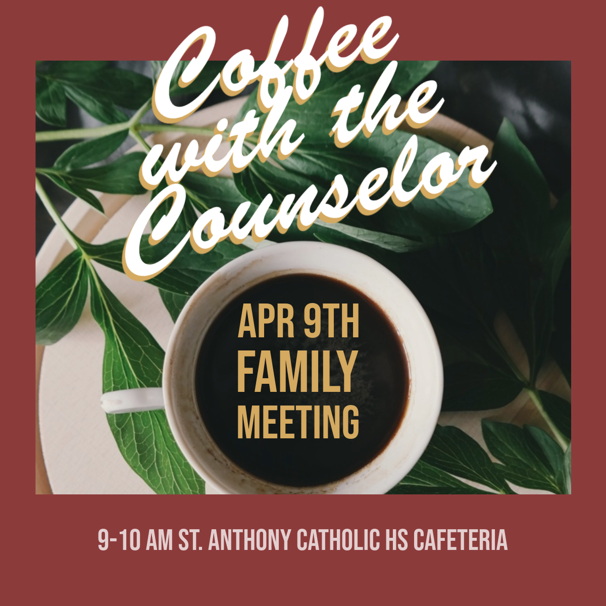 Interested families can attend virtually or in person and should RSVP here: Coffee with the Counselor Registration – Fill out form